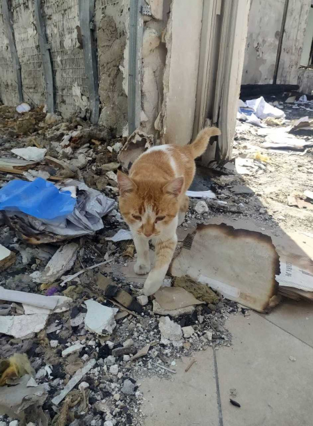 Поки ми розмовляли з Вікторією, цікаво було спостерігати за місцевими котами. Вони зовсім не звертали увагу на руйнування, спокійно обходили територію. Здається, пушистики не сумніваються у тому, що центр повернеться на свою територію і все тут буде гаразд.