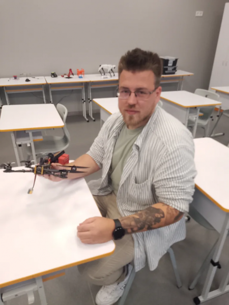 Викладач інформатики Артем Романча потрапив до ліцею зовсім недавно. До того він вів гурток для ветеранів, дітей ветеранів у комунальній установі «Ветеран ХАБ». Навчав пілотуванню дронів, програмуванню, а також працювати з паяльником тощо.