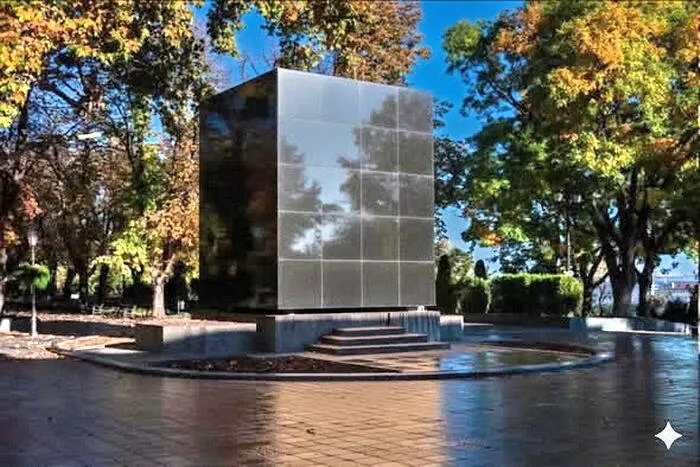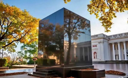 Відомий одеський скульптор Михайло Рева творчо відреагував на появу дерев’яного саркофага, яким нещодавно накрили пам’ятник російському поету Олександру Пушкіну на Приморському бульварі, запропонувавши власне художнє бачення майбутнього монумента – чорний дзеркальний куб.