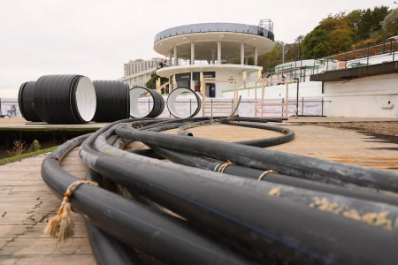 Збірка підводного трубопроводу відбувається на березі за технологією електродифузійного зварювання. Потім конструкцію плавучим методом доставлять у море та заведуть у старий колектор. Оголовок нового випуску занурять на проєктну глибину, зафіксують і засиплють щебенем для стабільності. Додатково змонтують вісім привантажувальних блоків.