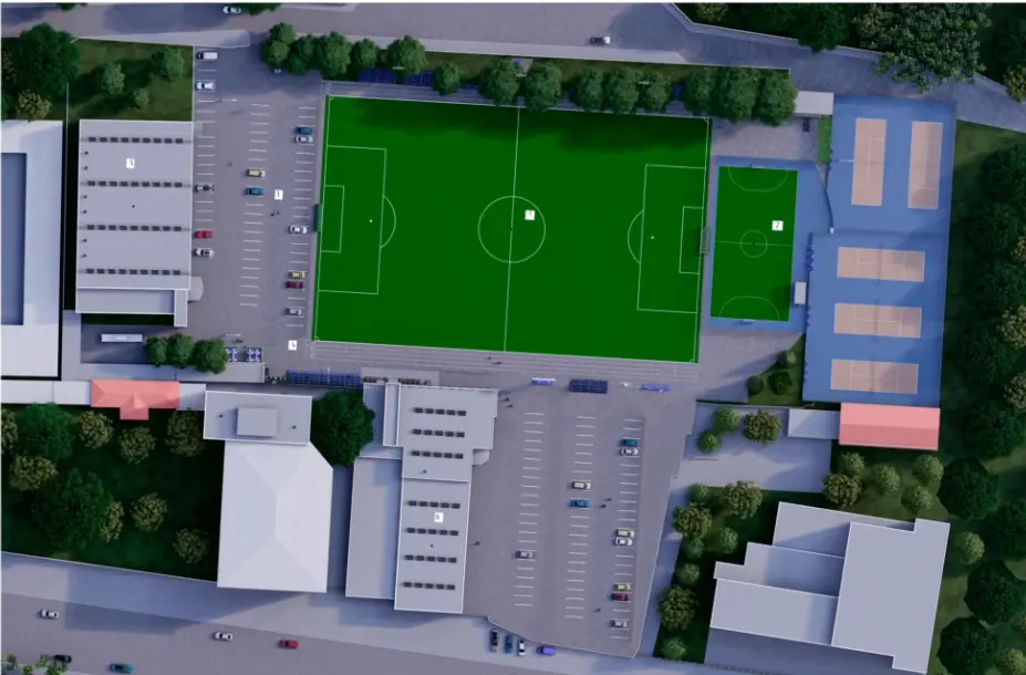 Повнорозмірне поле, мініфутбольний майданчик та готель