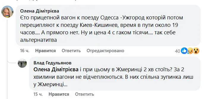Інших подробиць «Укрзалізниця» не повідомляла, проте в коментарях під повідомленням йдеться, що це не прямий рейс, а вагон приєднують до поїзда Одеса-Ужгород, який потім причіплюють до поїзда Київ-Кишинів. Загальний час у дорозі близько 19 годин.