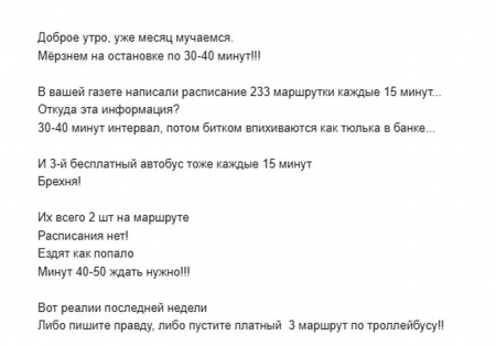 Значна частина реакцій – це зауваження та скарги, траплялися також пропозиції та подяки. Проаналізувавши актуальні на той момент інформаційні запити мешканців, ми поставили декілька основних запитань до міської влади ще 7(!) січня, оформивши їх у вигляді запиту на отримання публічної інформації: