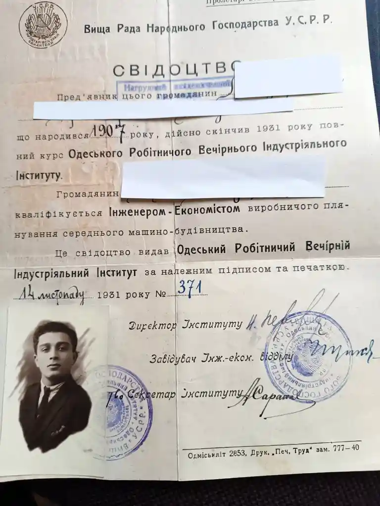 Цей матеріал почався з моєї звичайної прогулянкиСтароконним ринком. Серед старих книг, документів і випадкових знахідок я придбав диплом одеського інституту, виданий у 1931 році. Документ виявився у відмінному стані, але головне — він був оформлений українською мовою, яка одразу здалася незвичною й навіть дивною за сучасними мірками.