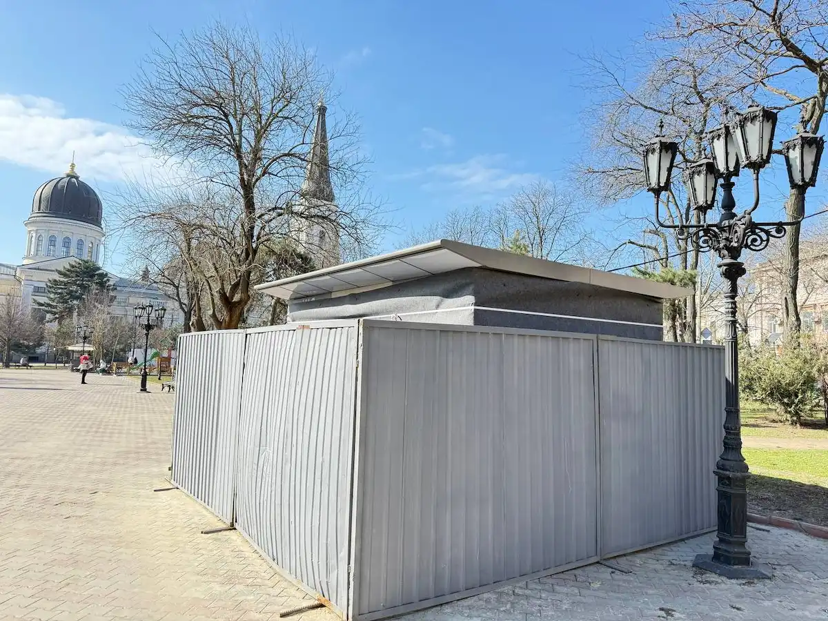 На Соборній площі в Одесі завершується встановлення сучасного автономного туалету. Це не просто вбиральня, а справжній смарт-об’єкт, який сам себе миє, дезінфікує і навіть відкриває двері відвідувачам, які «зазівалися».