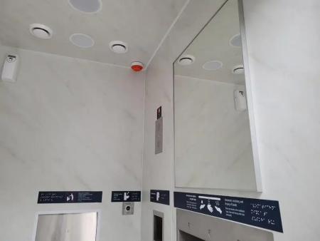 Для безпеки користувачів всередині встановлена кнопка виклику допомоги та прямий зв’язок з диспетчером. Двері можна відчиняти як вручну, так і автоматично.