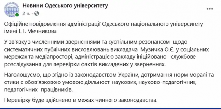 Скандал в одеському виші: викладача перевіряють через резонансні пости
