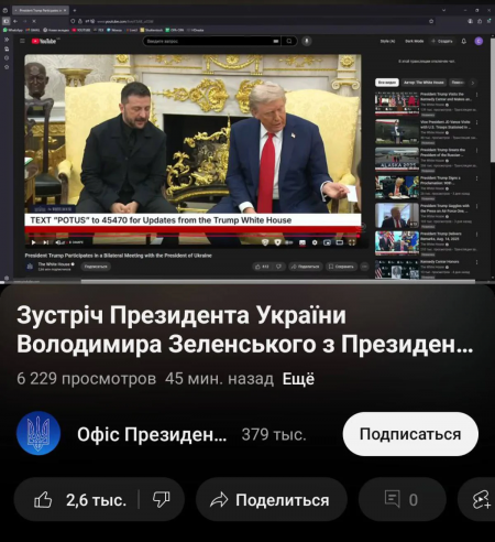 У Telegram-каналі "Капітан Луганський"помітили, що в Офісу президента також російськомовний інтерфейс, а в закладках піратський сервіс HDrezka. Наразі цього моменті на YouTube-каналі ОП немає.