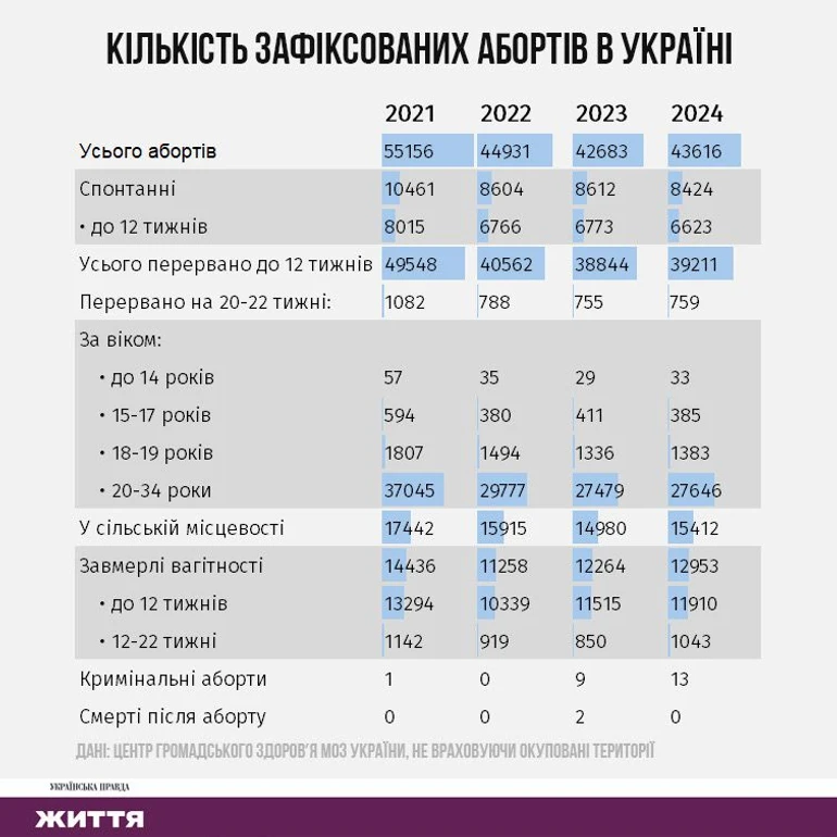 У 2024 році статистика абортів зросла до43 616випадків.