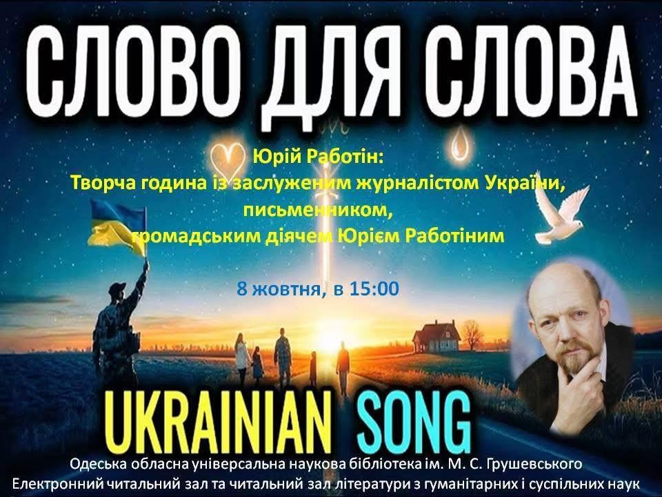 В Одеській обласній універсальній науковій бібліотеці ім. М. С. Грушевського, у затишних залах, де завжди панує дух книги, поезії та живого слова, відбулася творча зустріч із Головою Одеської обласної організації Національної спілки журналістів України, заслуженим журналістом України, письменником і громадським діячемЮрієм Работіним.